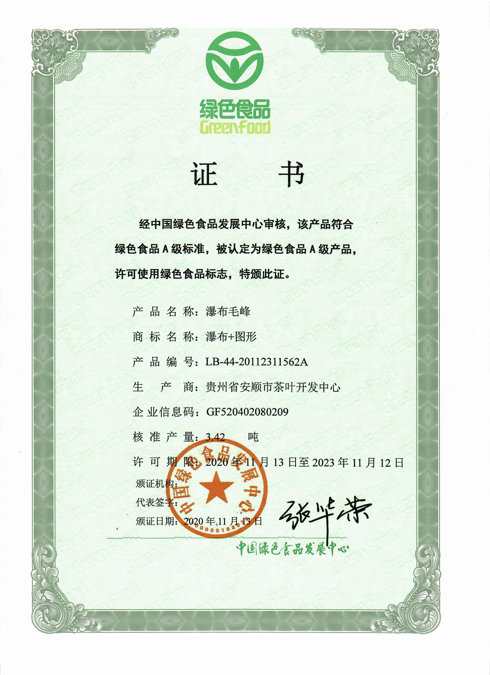 首頁(yè) > 榮譽(yù)資質(zhì) > 綠色食品(瀑布毛峰)