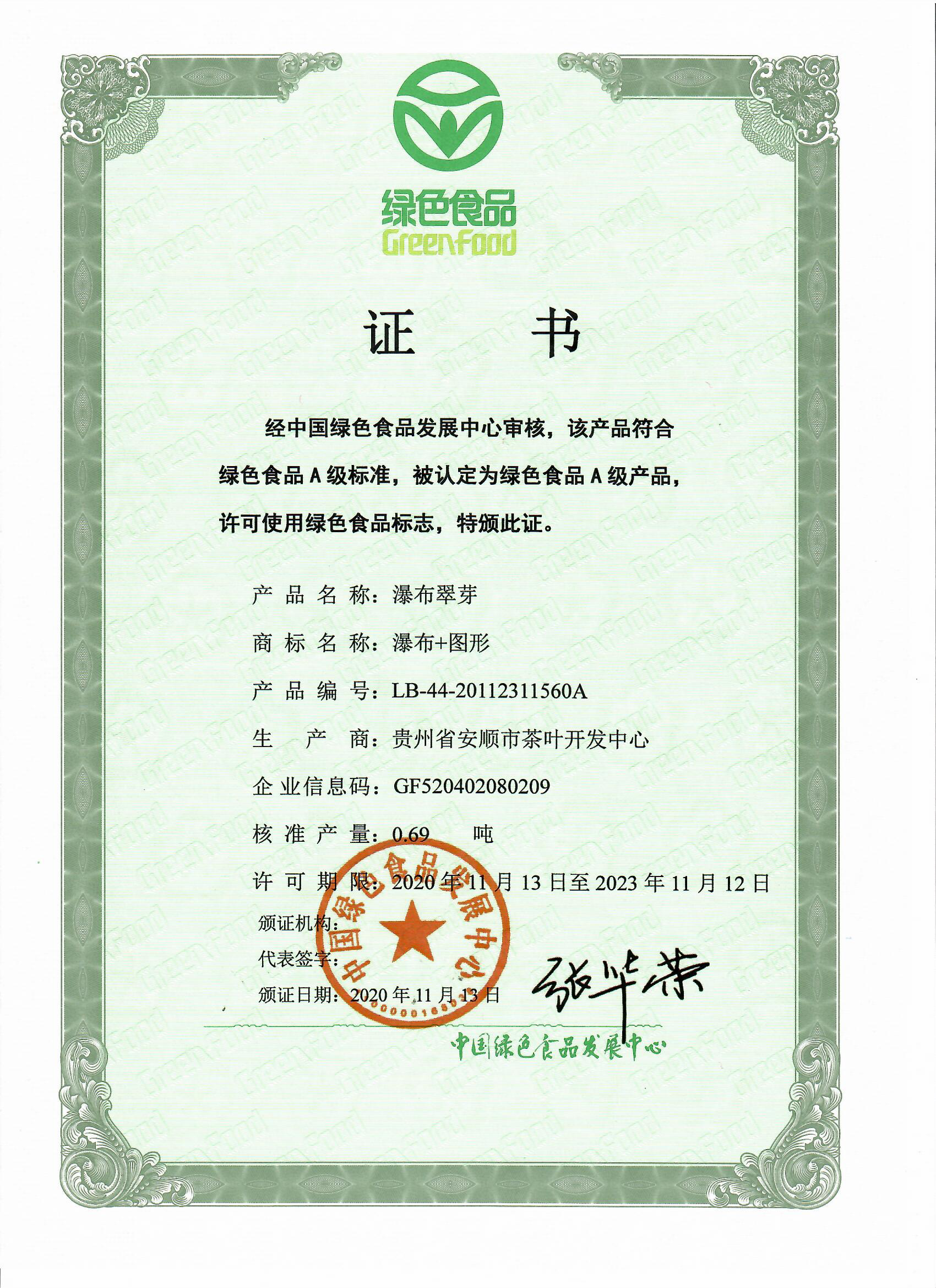 首頁 > 榮譽資質 > 綠色食品(瀑布翠芽)