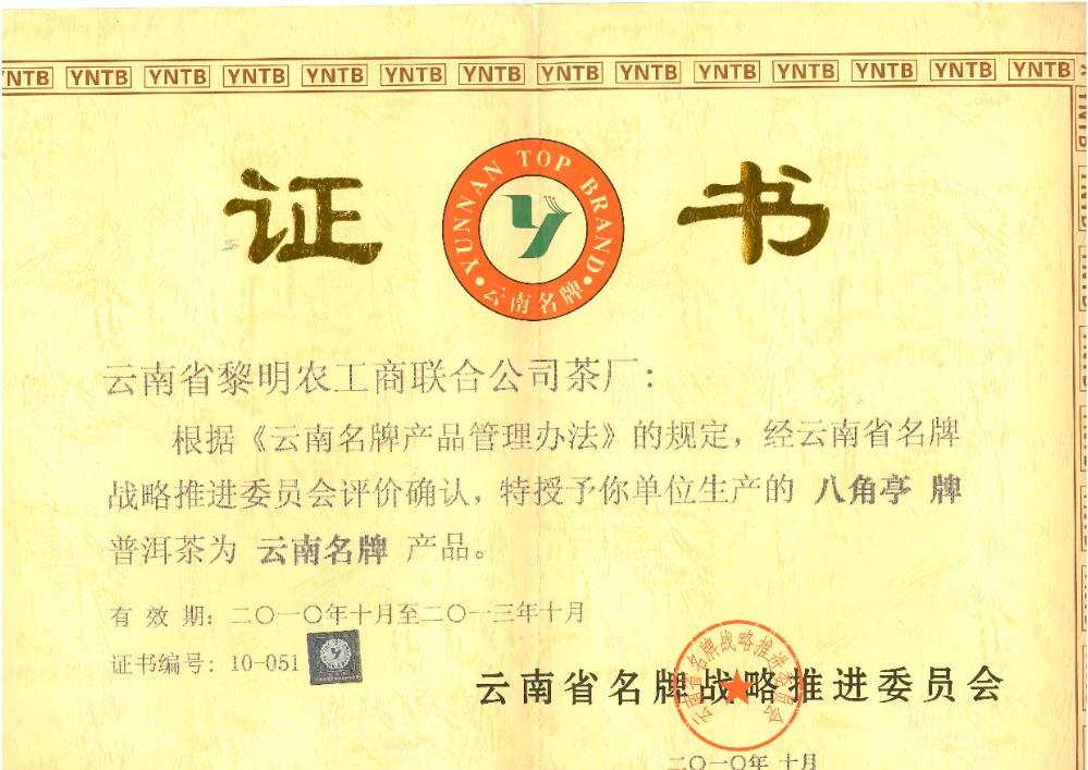 | 發(fā)證機(jī)構(gòu): | 云南省名牌戰(zhàn)略推進(jìn)委員會 | 發(fā)證時間 : | 2010-10-01 |
