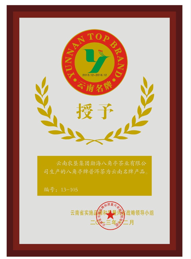榮譽(yù)資質(zhì) 八角亭云南名牌產(chǎn)品