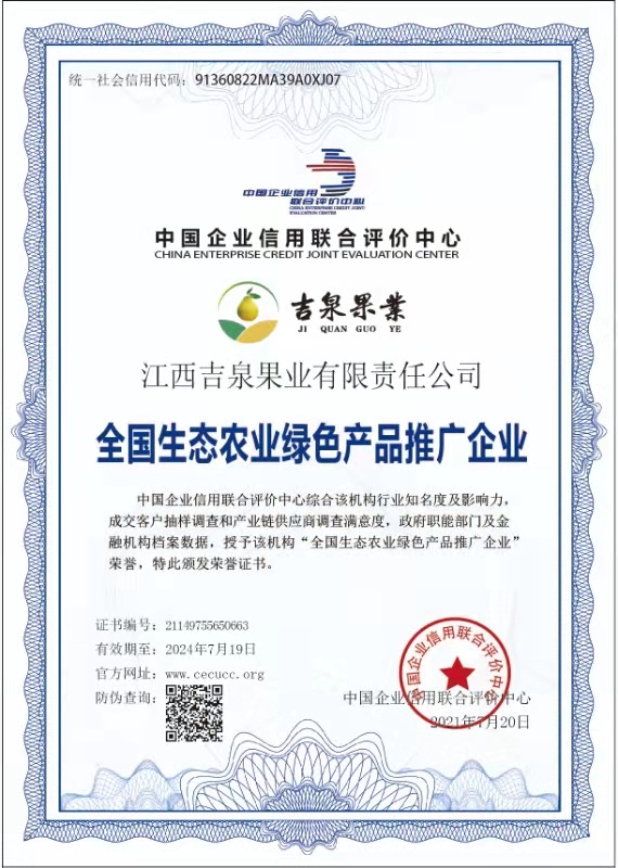 公司被評定全國生態(tài)農(nóng)業(yè)綠色產(chǎn)品推廣企業(yè)
