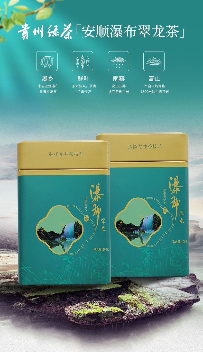 貴州綠茶 安順瀑布茶辦公茶2021新茶 一級翠龍100克罐裝