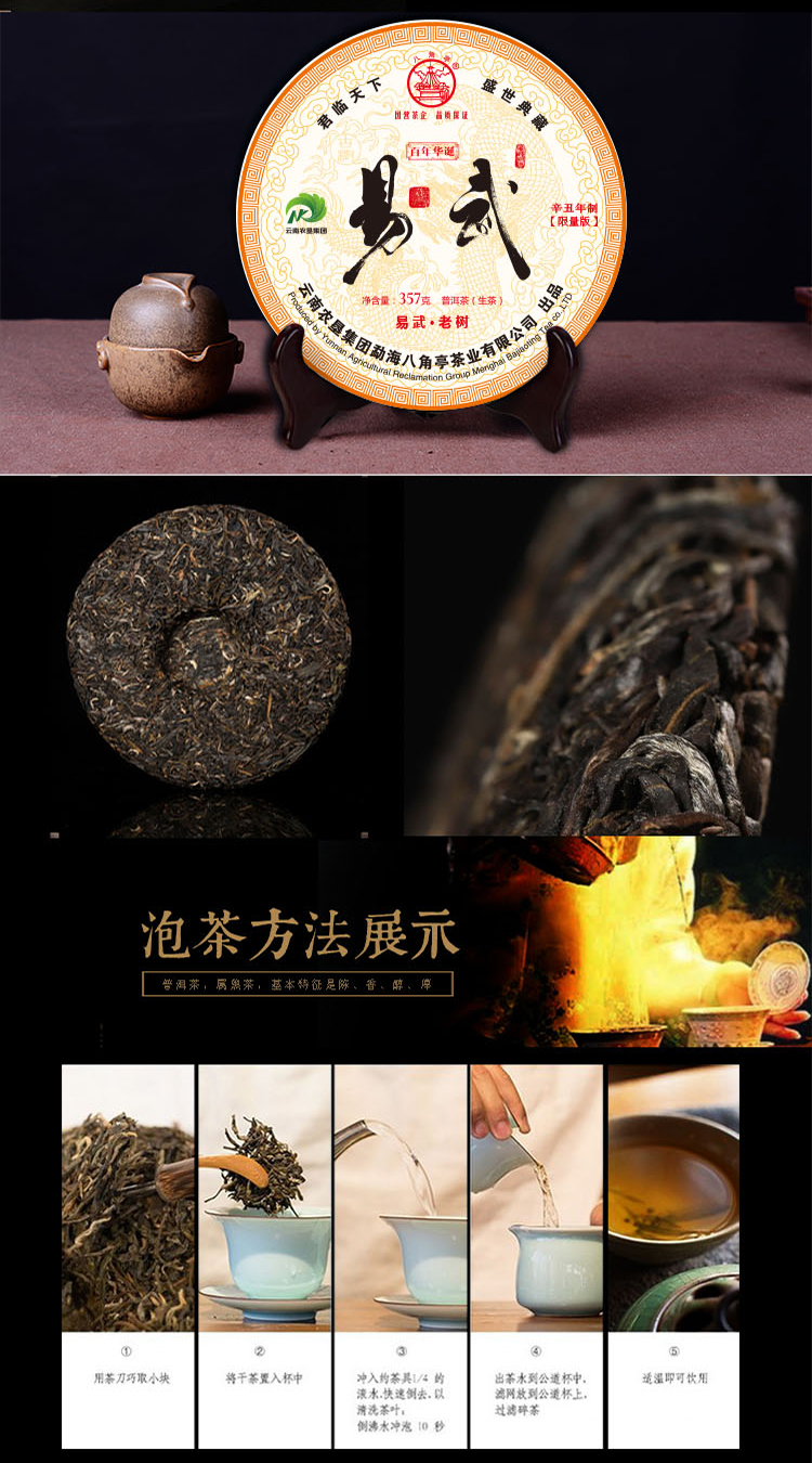 ??——八角亭茶業(yè)公司:經(jīng)營方式為生產(chǎn)加工、銷售,主營普洱茶、緊壓茶、兼營毛茶收購。目前以生產(chǎn)、加工、銷售“八角亭”系列普洱茶為主,是云南省農(nóng)業(yè)產(chǎn)業(yè)化龍頭企業(yè)?!鞍私峭ぁ鄙虡?biāo)獲得云南省著名商標(biāo),“八角亭”牌普洱茶榮獲云南省名牌產(chǎn)品和云南省名牌農(nóng)產(chǎn)品。已先后通過工業(yè)生產(chǎn)許可證、ISQ9001與HCCP認(rèn)證、云茶牌認(rèn)證(YC)等項(xiàng)工作,在歷次專業(yè)評比中“八角亭”普洱茶多次獲得特等金獎(jiǎng)和金獎(jiǎng)。2017年5月,“八角亭”牌老班章茶葉獲得了有機(jī)茶資格認(rèn)證。八角亭茶業(yè)公司多次進(jìn)行了技術(shù)改造,現(xiàn)已建立了標(biāo)準(zhǔn)化生產(chǎn)車間和設(shè)備,年設(shè)計(jì)生產(chǎn)量達(dá)3000噸,是整個(gè)公司的主體核心企業(yè)。