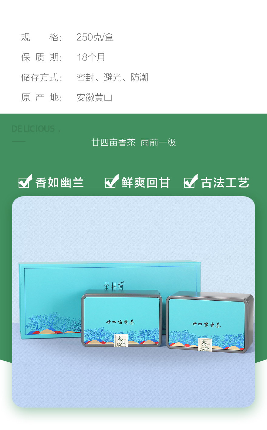 茶林場 廿四畝香茶 一級雨前濃香型綠茶 250克禮盒裝