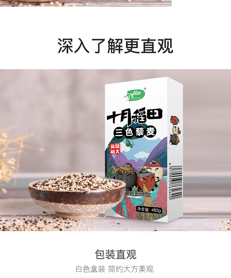 十月稻田三色藜麥紅藜麥、黑藜麥白藜麥雜糧有機粗糧代餐480g